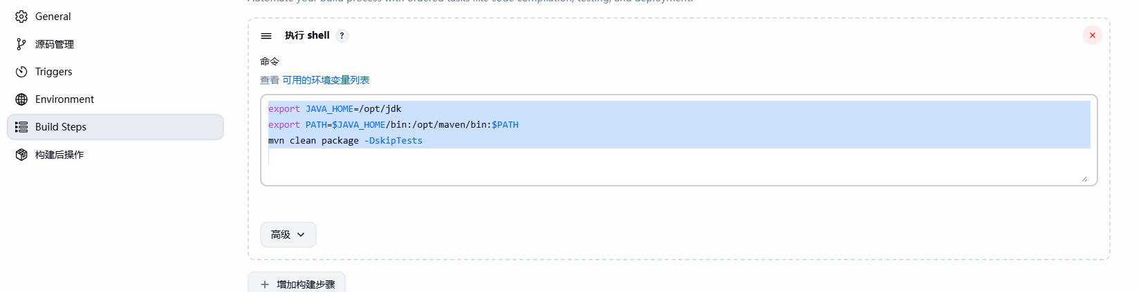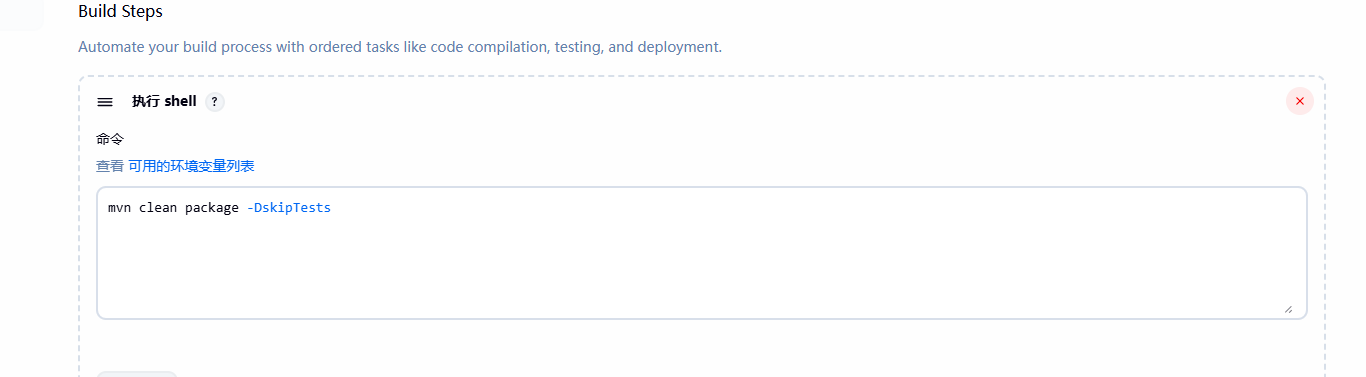 在"构建"区域添加构建步骤: