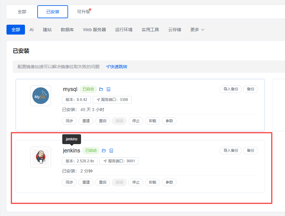 通过 1Panel 安装 Jenkins 非常高效: