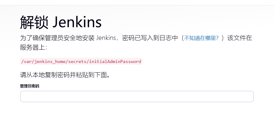 第一次进入 Jenkins 会要求输入初始密码。