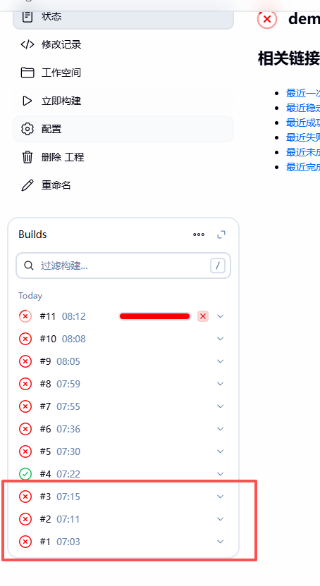 📌 左侧 → "构建历史" → 对应日志图标