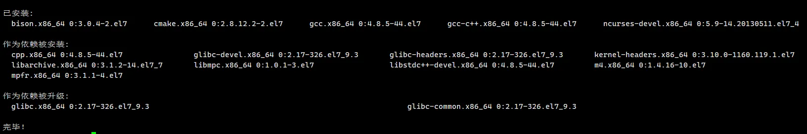yum -y install gcc gcc-c++ ncurses ncurses-devel bison cmake