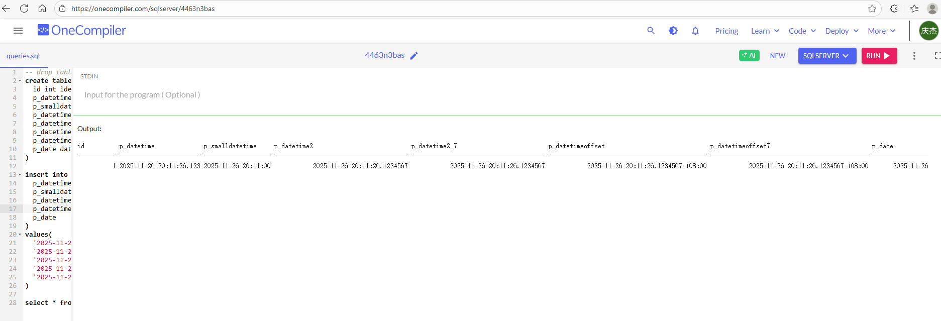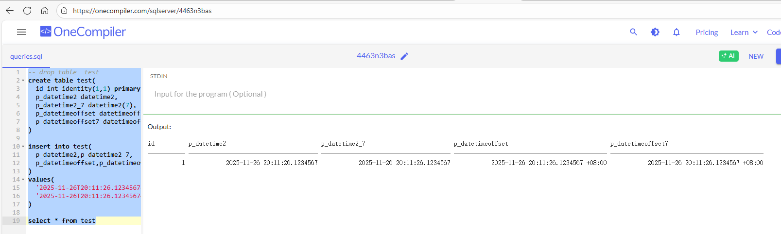 '2025-11-26 20:11:26.123', -- 带时区 或者 多一位小数就会报转换错误 Conversion failed when converting date and/or time from character string.