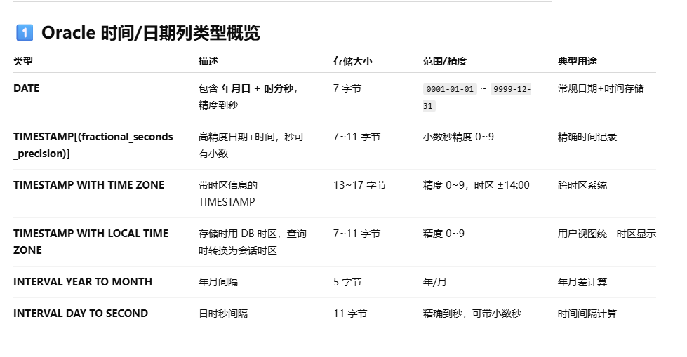 先附上chatgpt关于oracle时间列类型的介绍