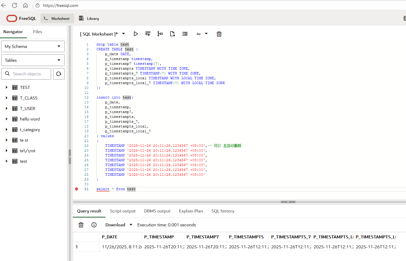 TIMESTAMP '2025-11-26 20:11:26.1234567 +08:00',-- 可以 且自动截断