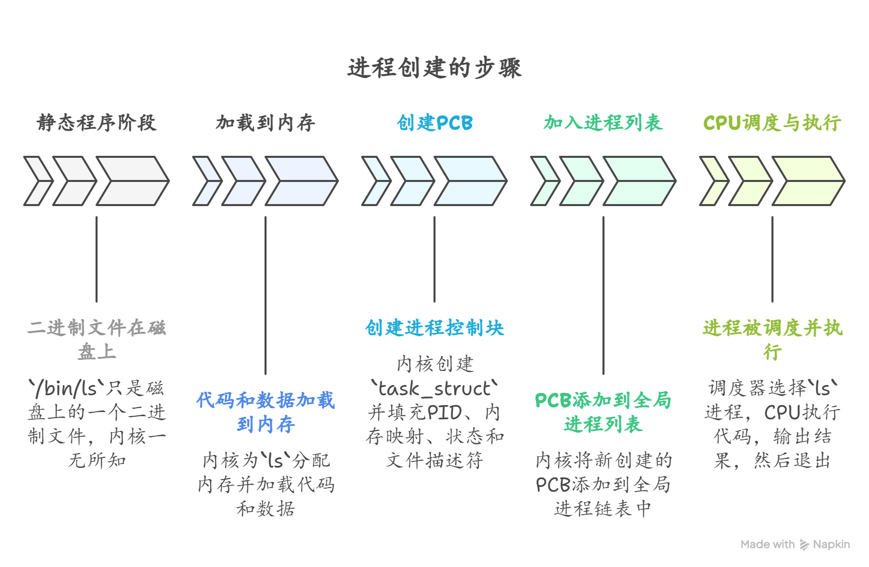 - 加入进程列表:内核将这个新创建的 PCB 添加到全局的进程链表中,等待调度器临幸。