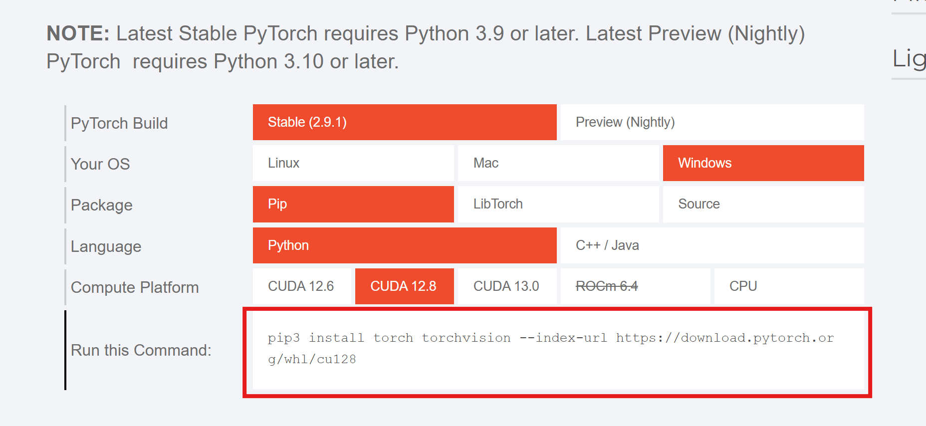 - 进入pytorch的官网下载对应cuda版本的torch和torchvision