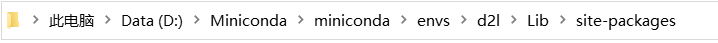env目录下是你的环境,这里我的环境是叫d2l,如果不是在其他环境下那么就直接在miniconda/lib/site-packages中找到