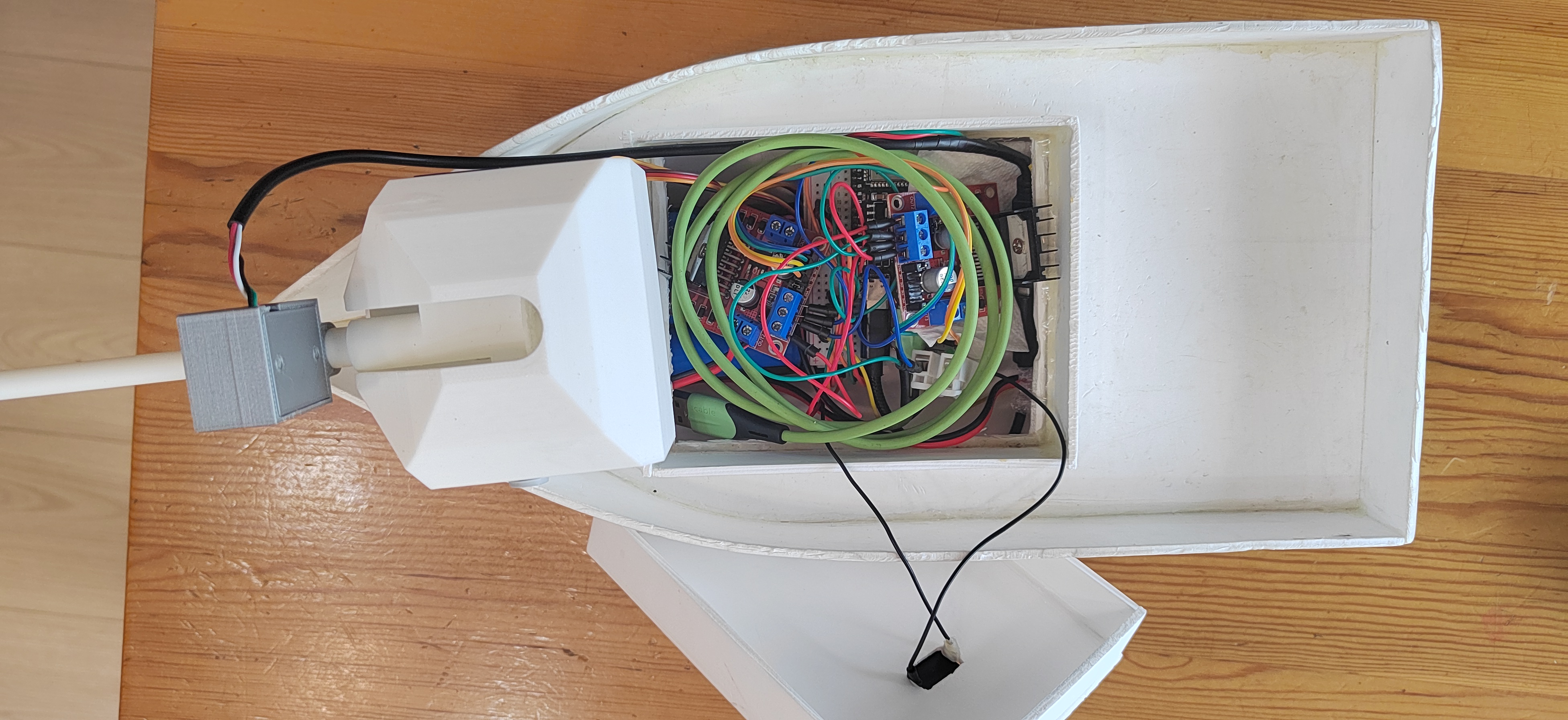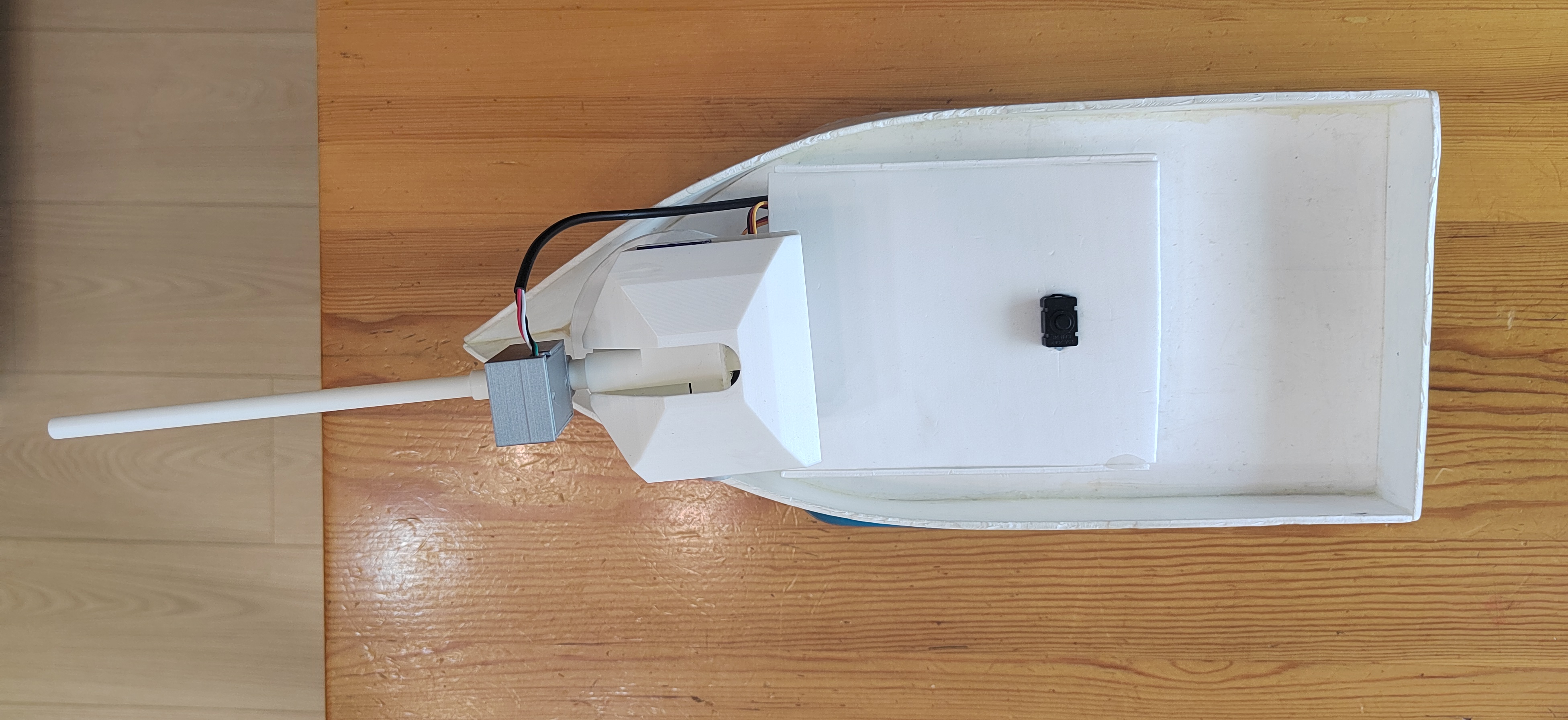 3、连接舵机,ESP32S3根据远程指令控制舵机的转动角度,实现小船炮台的射击角度调整。