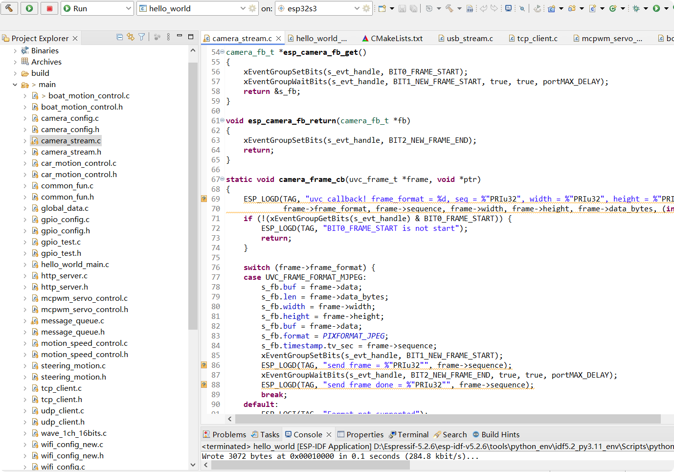 4、连接USB摄像头,ESP32S3通过采集摄像头的视频数据,上传到远端服务器,实现小船操作运行的全程可视。