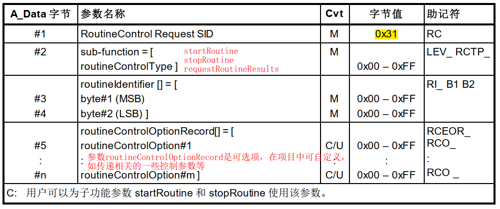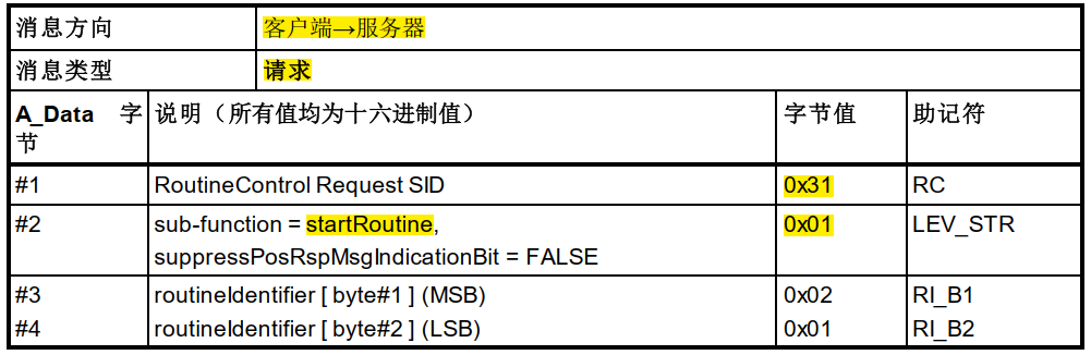 31服务,即RoutineControl(例程控制)服务,该服务允许客户端使用RoutineControl(例程控制)服务执行指定的步骤顺序并获取任何相关结果