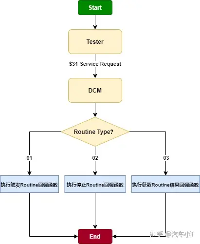 如下图所示,针对31服务的通信控制过程会经过如下几个AUTOSAR BSW模块进行处理,然后完成最终的Routine控制,具体步骤如下: