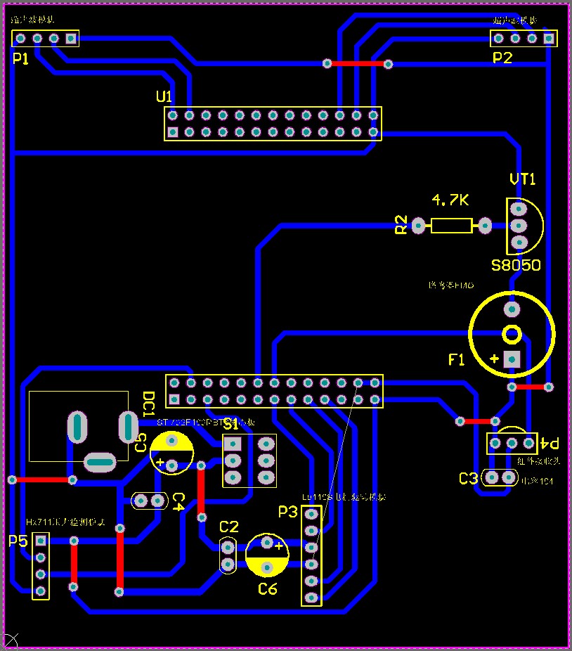 2.利用压力传感器测重,放在小车上物品的重量在500g范围以内,可以跟随,如果超过范围,就停止不动,蜂鸣器响提示超重。