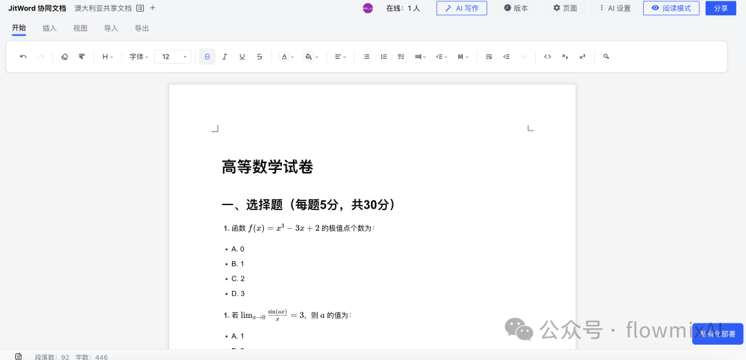 目前市面上调研了一圈,基本上只有我们的JitWord 文档支持公式无缝导出到word,这都依赖于我们实现的公式引擎。