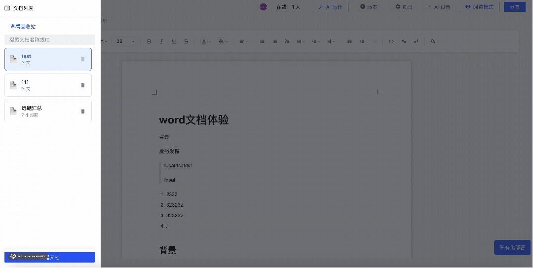 为了提高内容的安全性和稳定性,我们提供了文档回收站机制,可以对文档进行二次回收,感兴趣的也可以参考我们的实现思路。