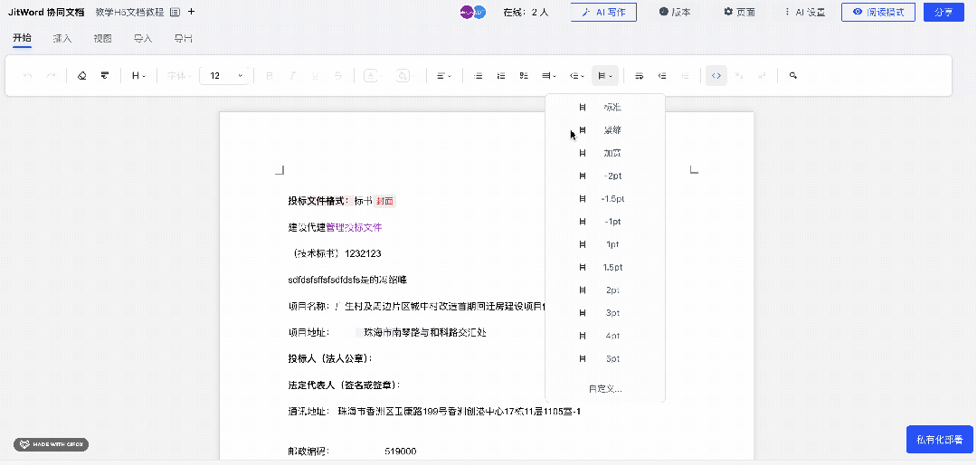 目前对标了Office的Word编辑器功能,支持了字体间距,行距,段前距,首行缩进,格式刷等功能,提高了文档样式的丰富度。
