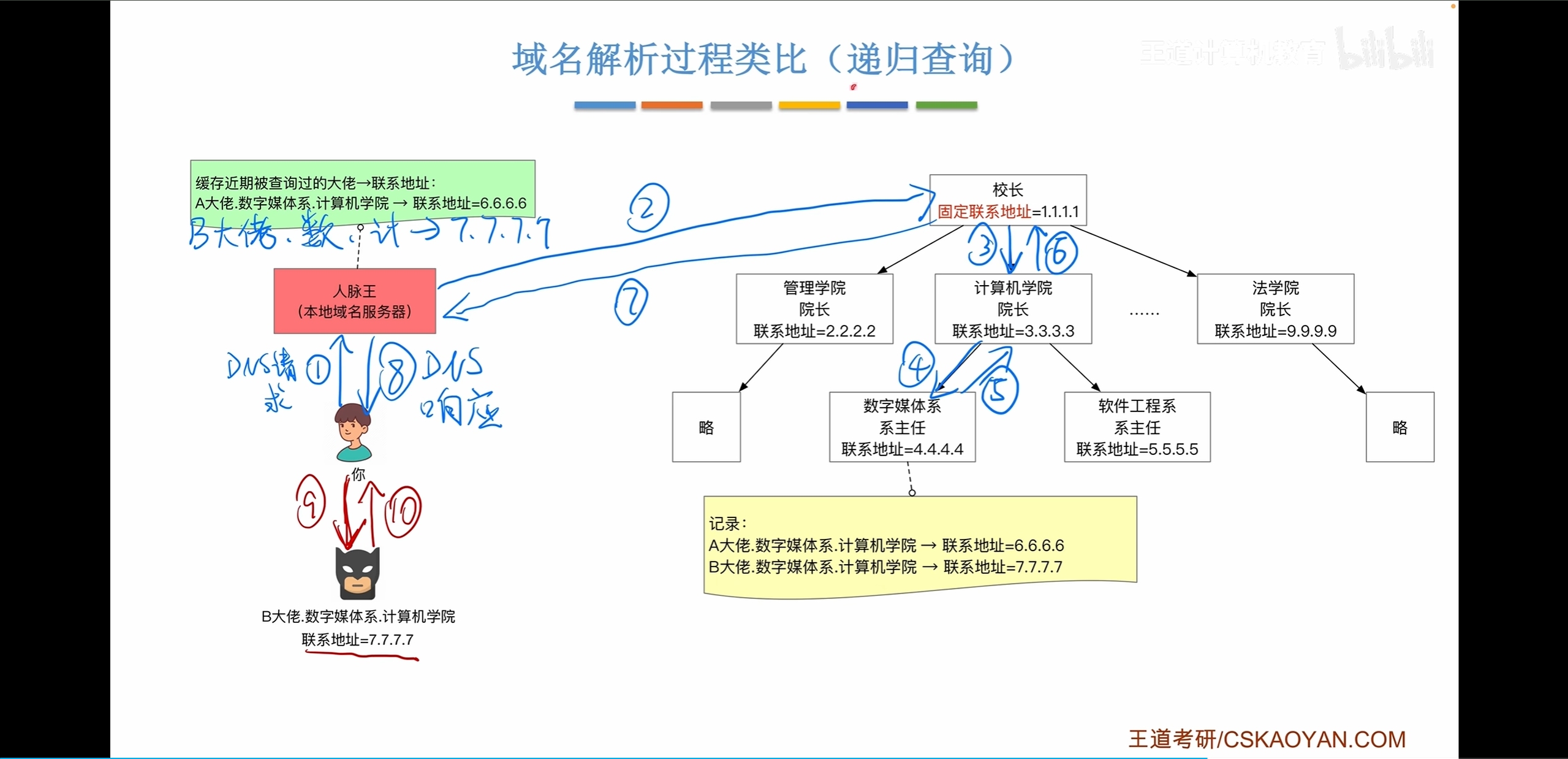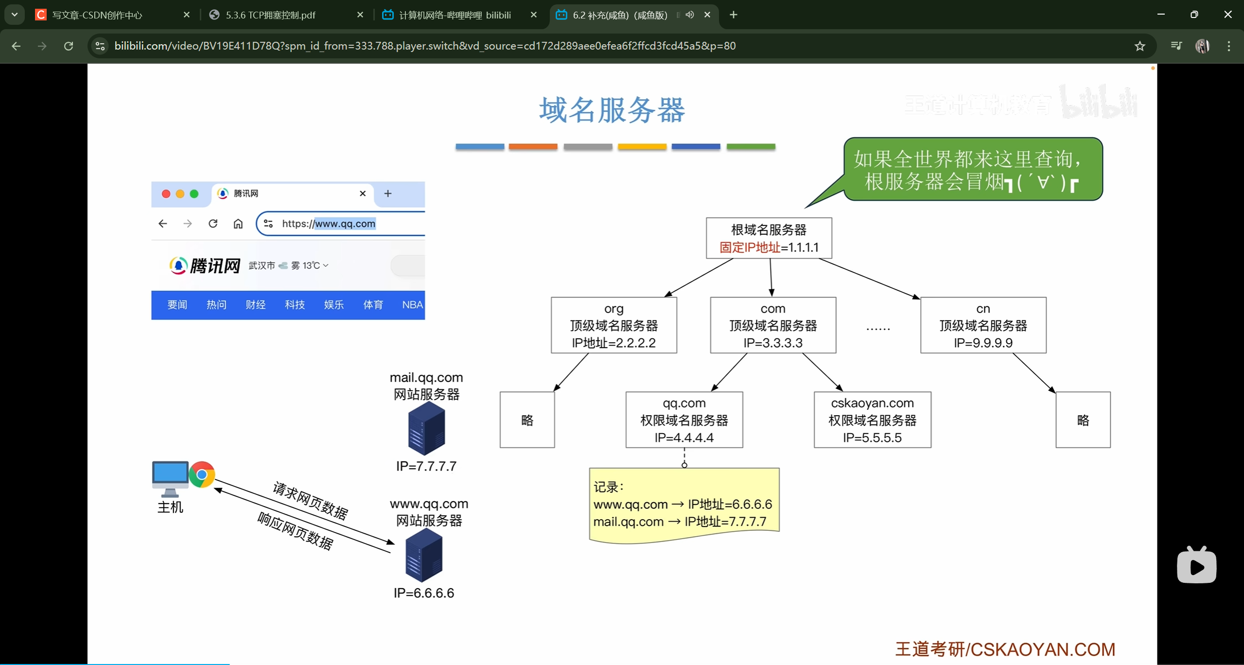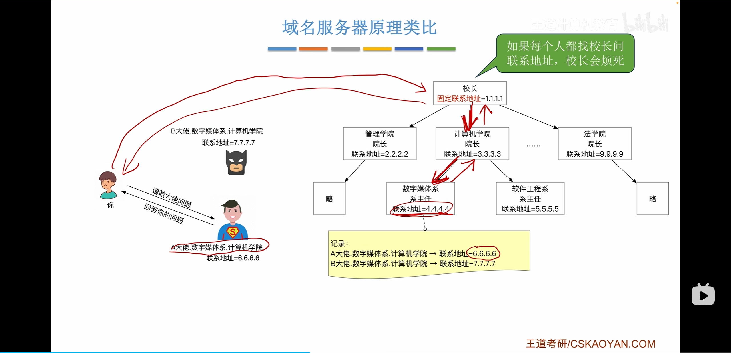 每一个域名服务器都记录着注册在他下面的域名。
