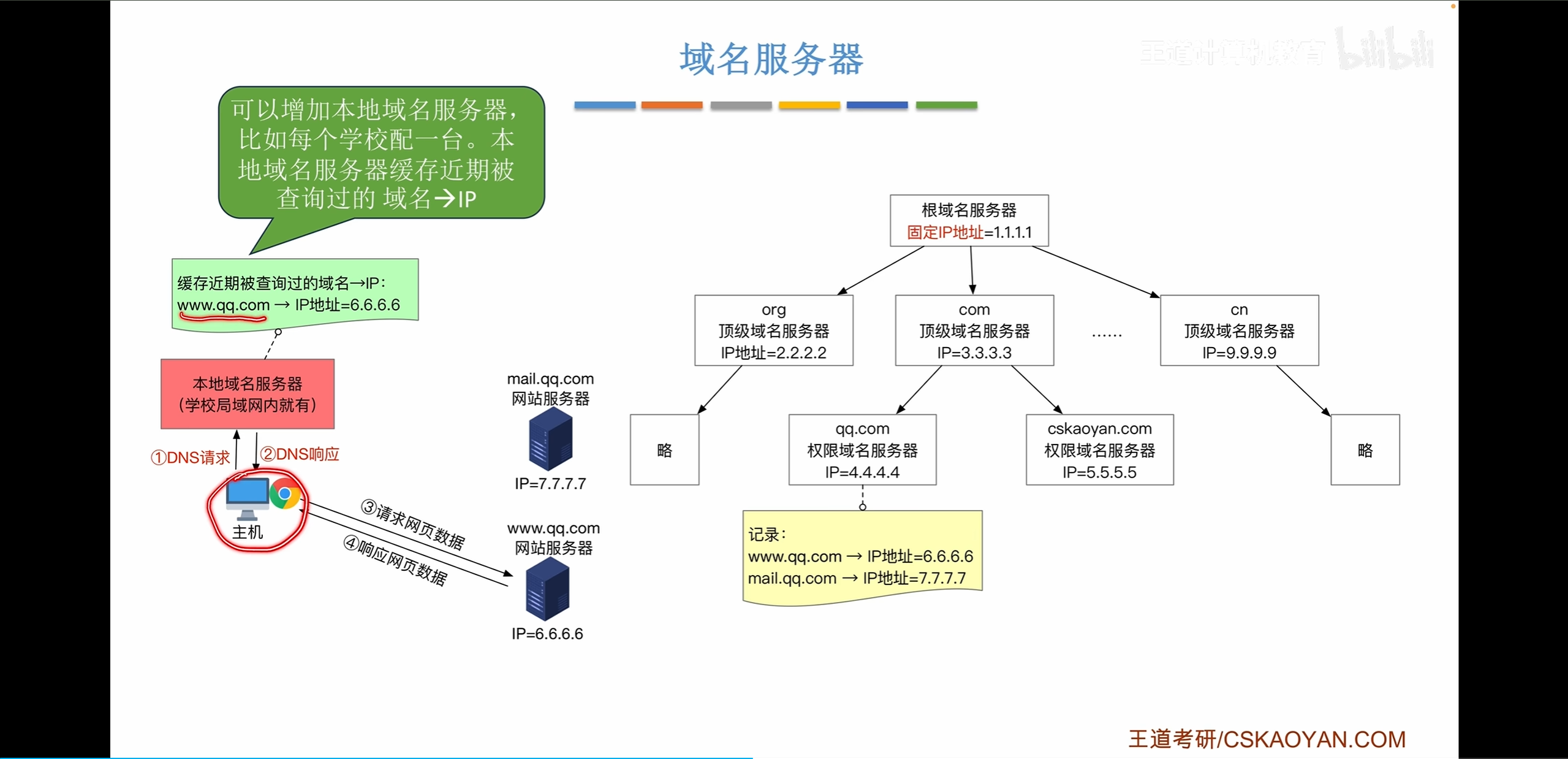 假设本地缓存了之前查询过的地址,那么不需要查询根域名服务器,可以直接从本地域名服务器获取需要查询的ip地址