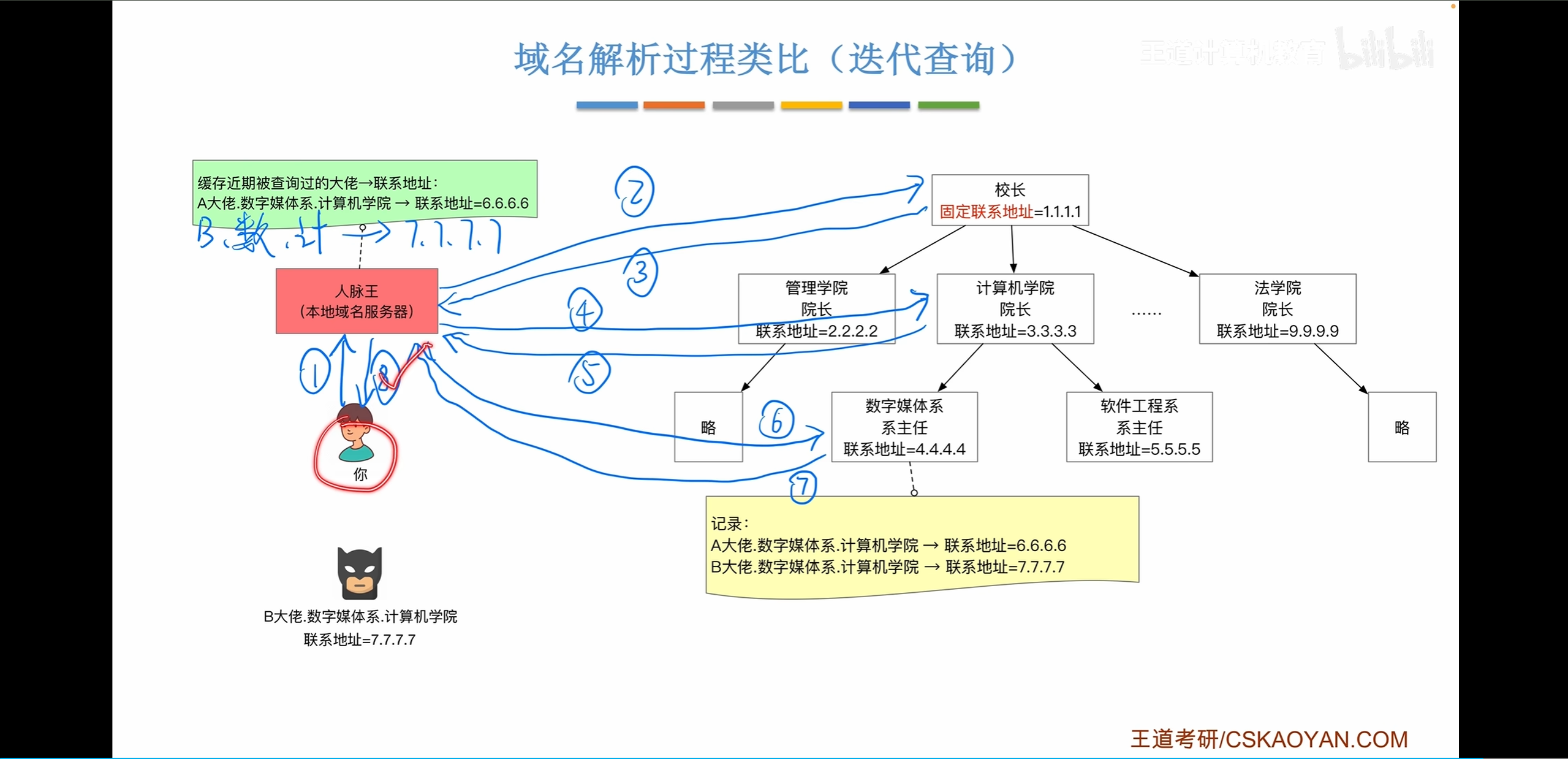 迭代查询,需要来回查询各个域名服务器