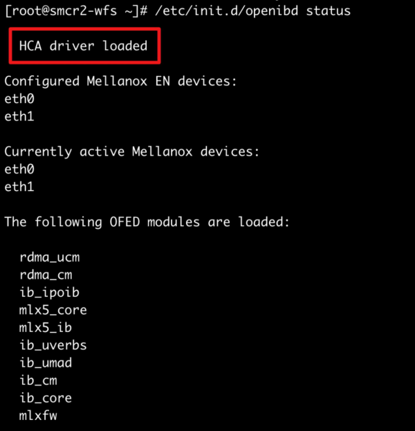 HCA即支持RDMA的网卡, driver loaded表示驱动已加载