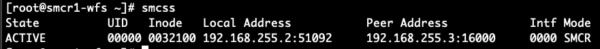 在client端执行smcss命令出现以下结果,Mode为SMCR说明smc-r跑通。