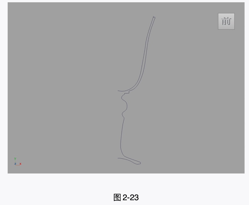 (2)单击"曲线"工具架上的"EP曲线工具"图标,在"前视图"中绘制出酒杯的一半剖面曲线,如图2-23所示。
