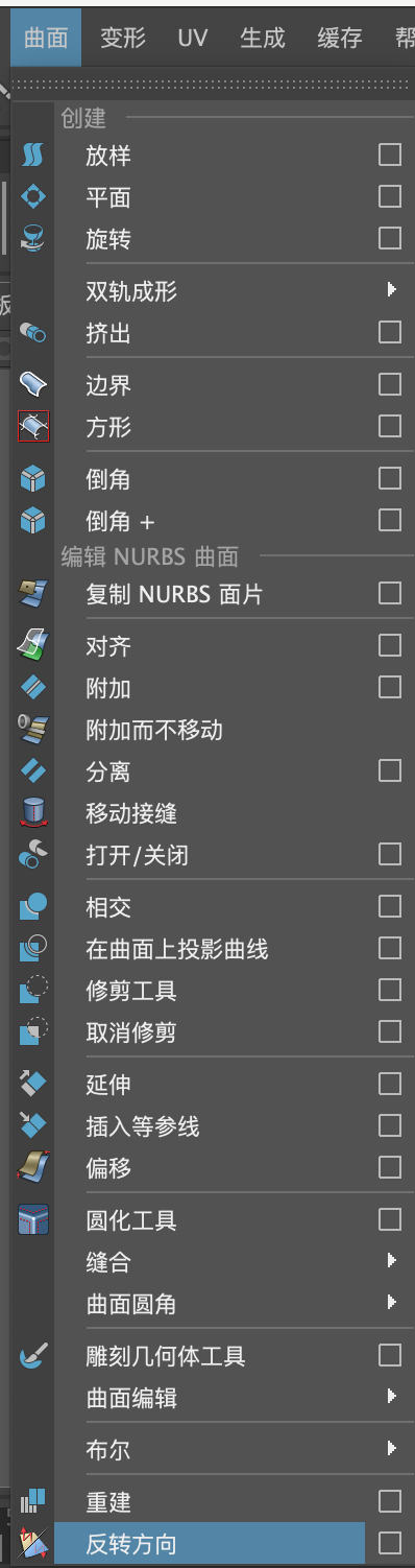(8)选择场景中绘制完成的曲线,单击"曲面"工具架上的"旋转"图标