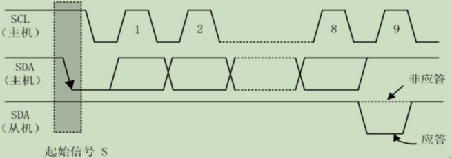 SCL为高电平期间,SDA线 由高电平向低电平的变化表示起始信号