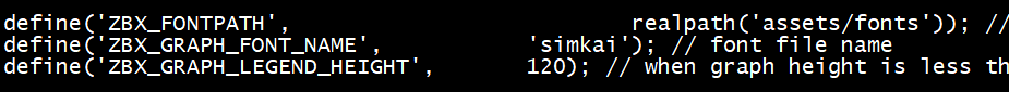 将define('ZBX_GRAPH_FONT_NAME', 'DejaVuSans'); // font file name这行中DejaVuSans 改成新上传的字体文件名字(不含后缀)。注意目前ttf的字体文件是正常的,使用ttc格式的字体会导致页面无法正常显示。