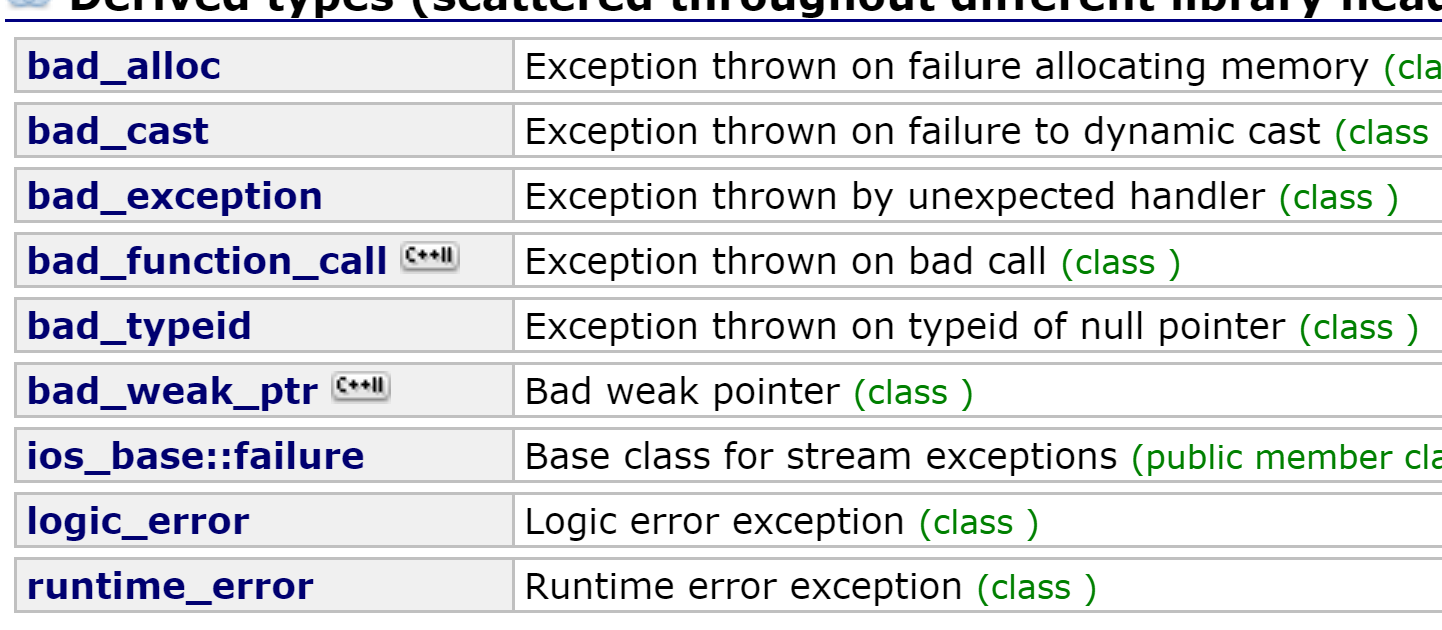 二. 标准库的异常