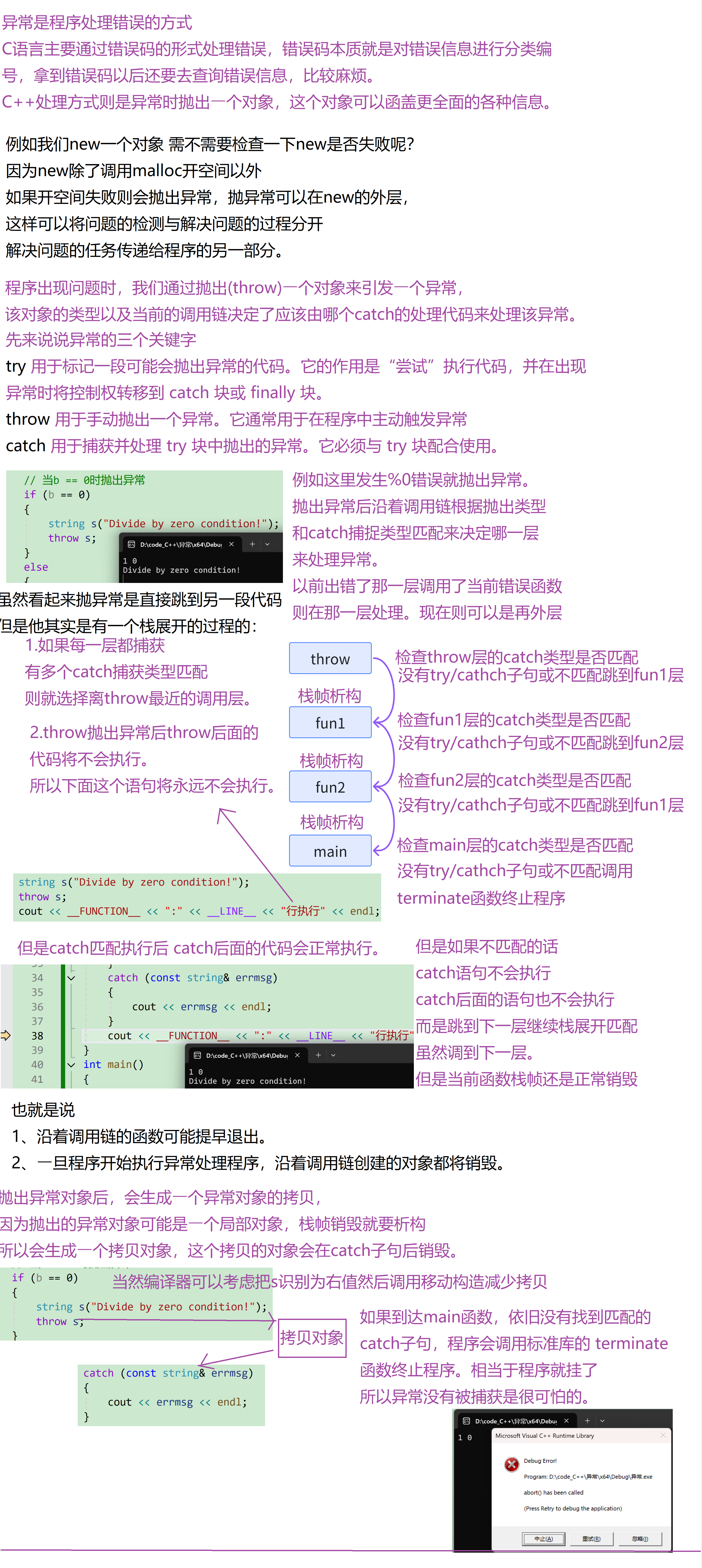 这就是C++的异常机制。大家自己好好消化!今天就分享到这!感谢各位的耐心垂阅!