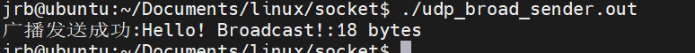 printf("广播发送成功:%s:%zd bytes\n", message, ret_send);