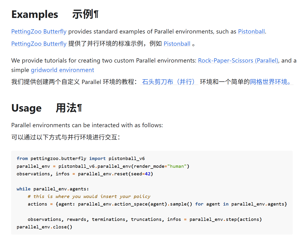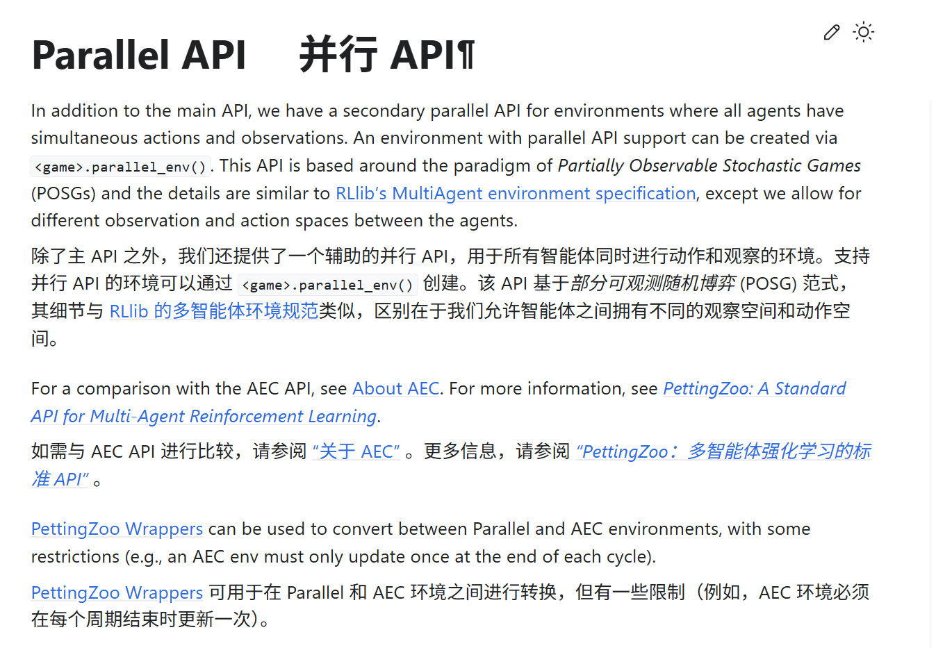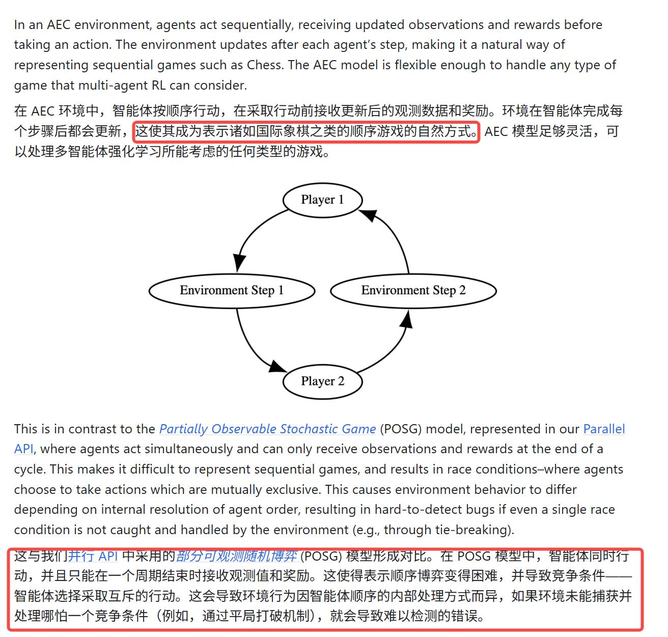 对于MARL,该库给了两种形式:AEC和Parallel;
