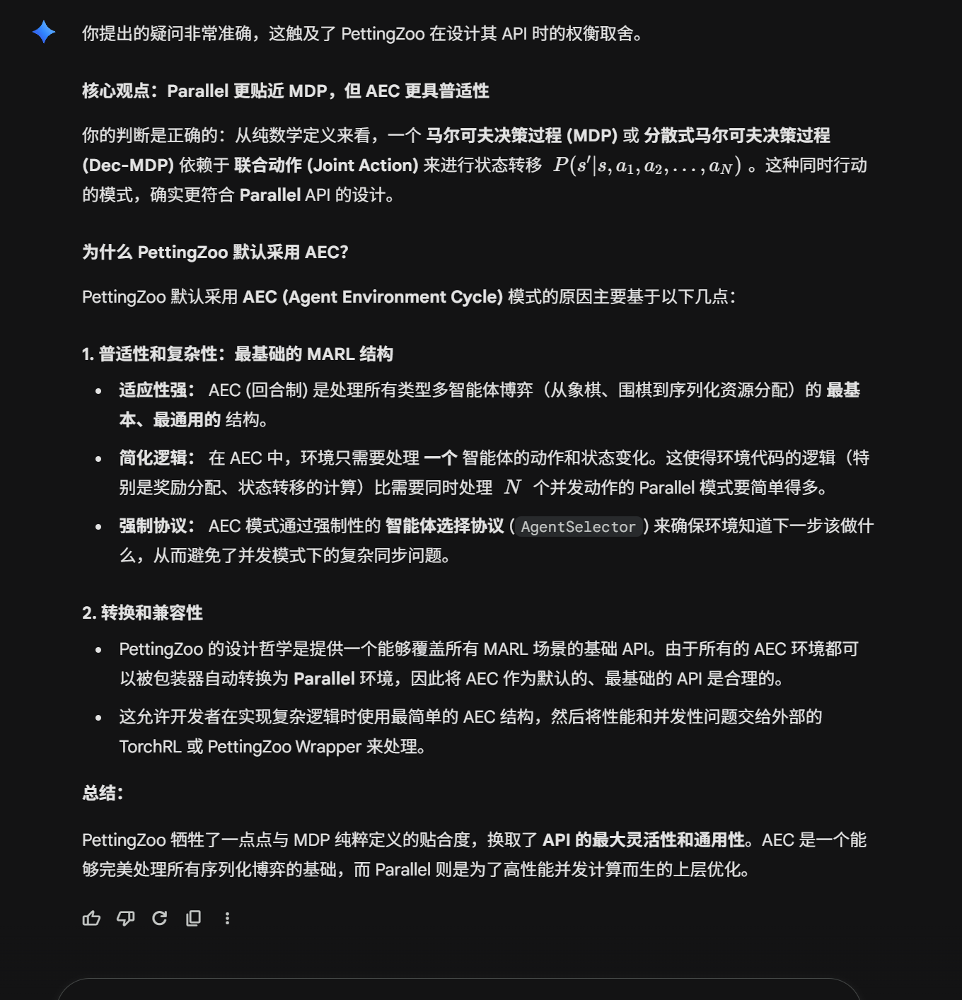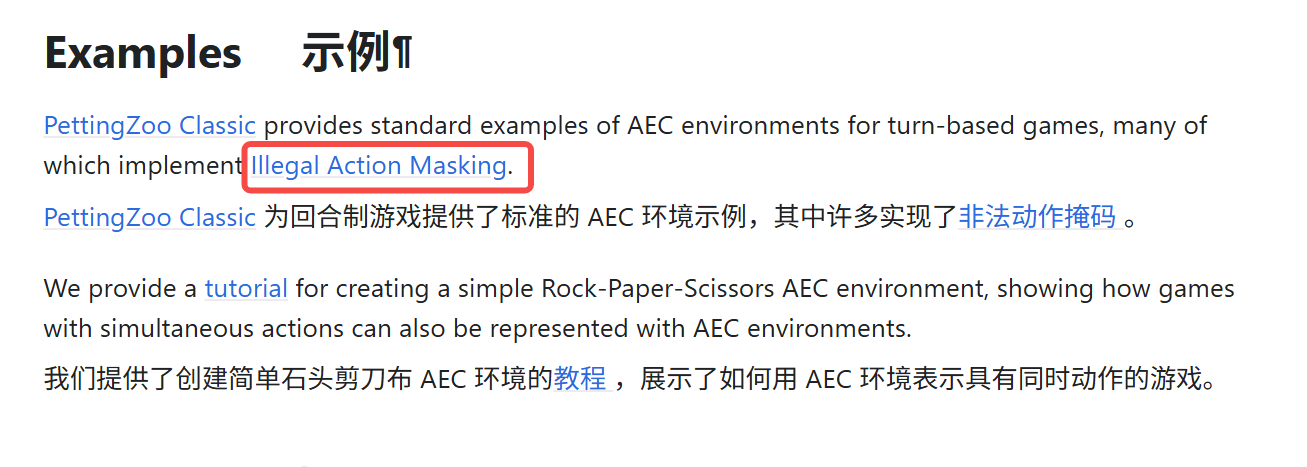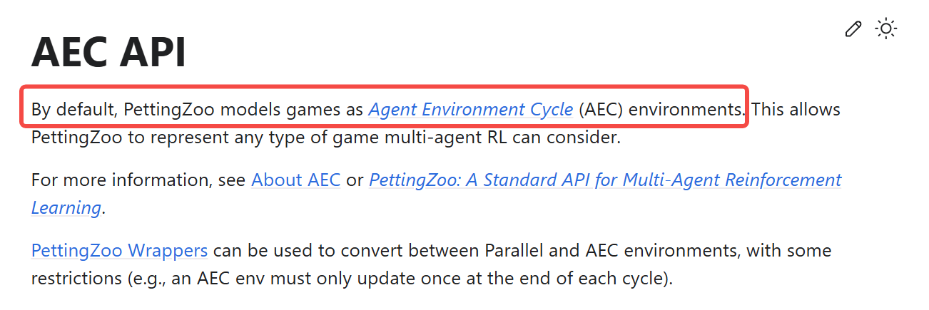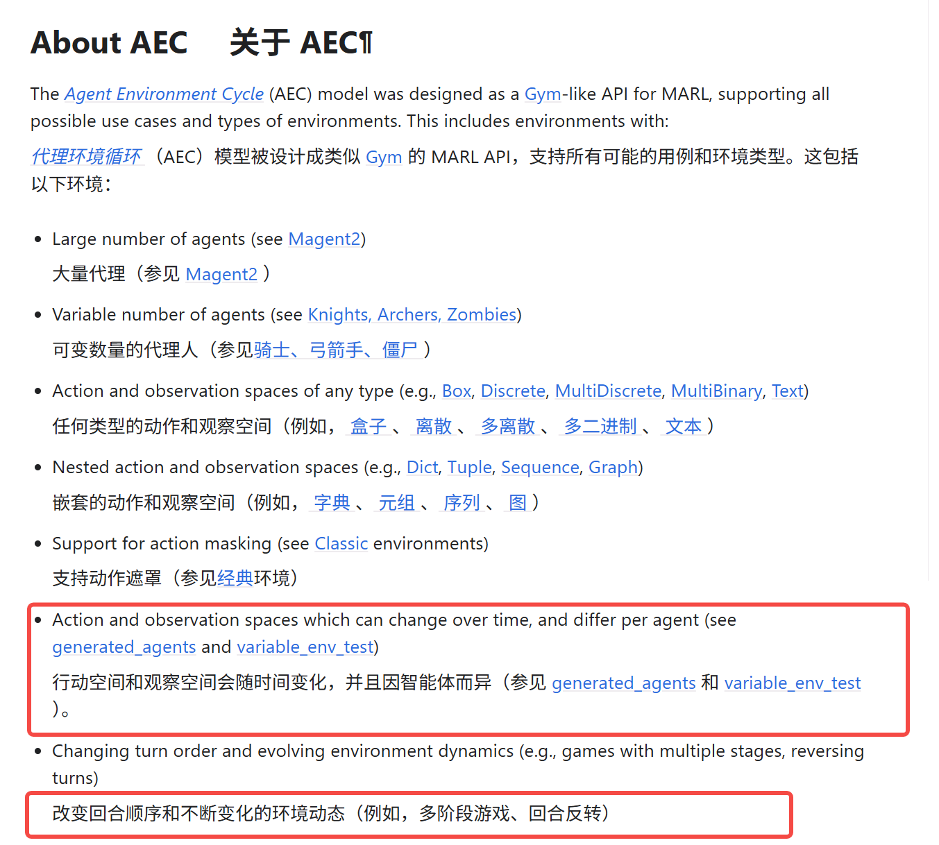 对于MARL,该库给了两种形式:AEC和Parallel;