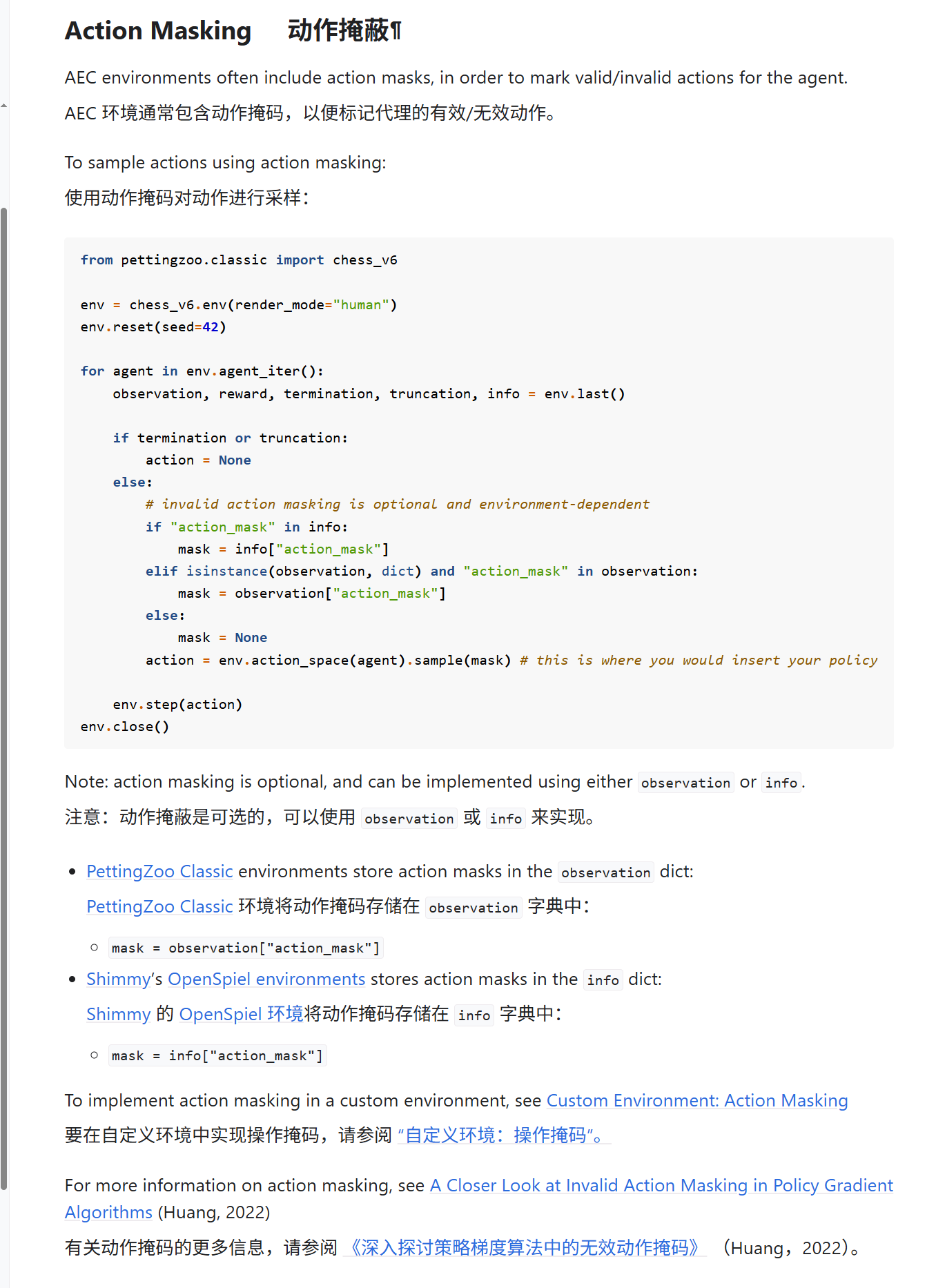 表示合法性: 动作掩码是一个布尔数组或向量,它标识了在当前状态下,哪些动作是有效的(合法的),哪些是无效的(非法的)。