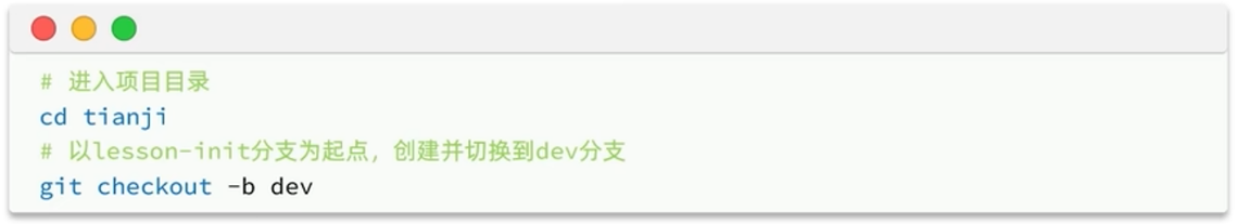 - 以lesson-init分支为起点,创建一个dev分支,完成项目开发:
