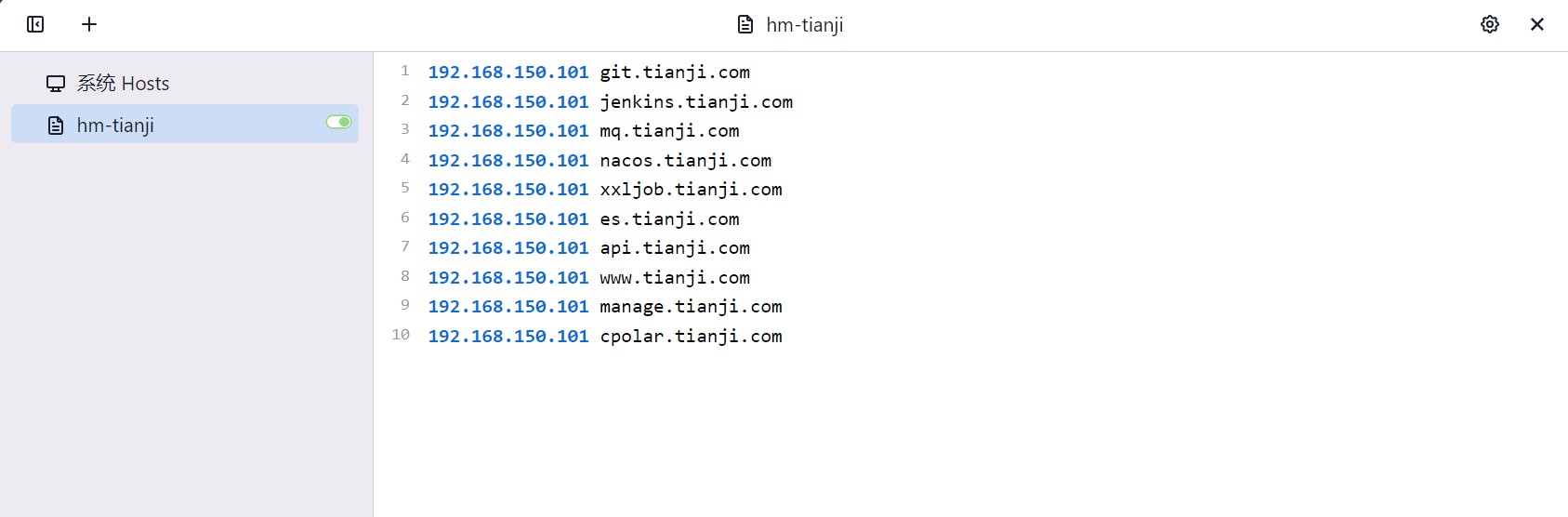 为了模拟使用域名访问,我们需要在本地配置hosts: