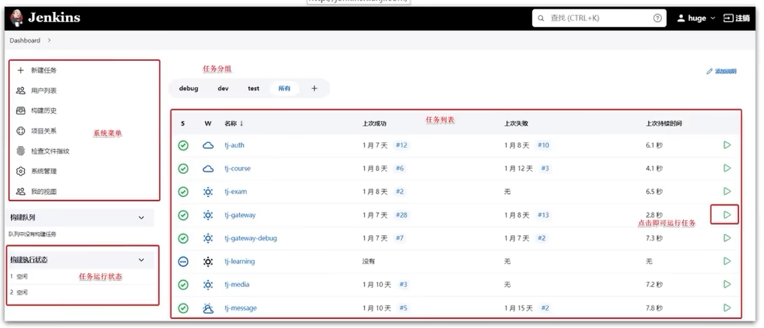 我们在虚拟机中已经基于jenkins实现了持续集成,访问 http://jenkins.tianji.com (账号:root/123)即可查看控制台