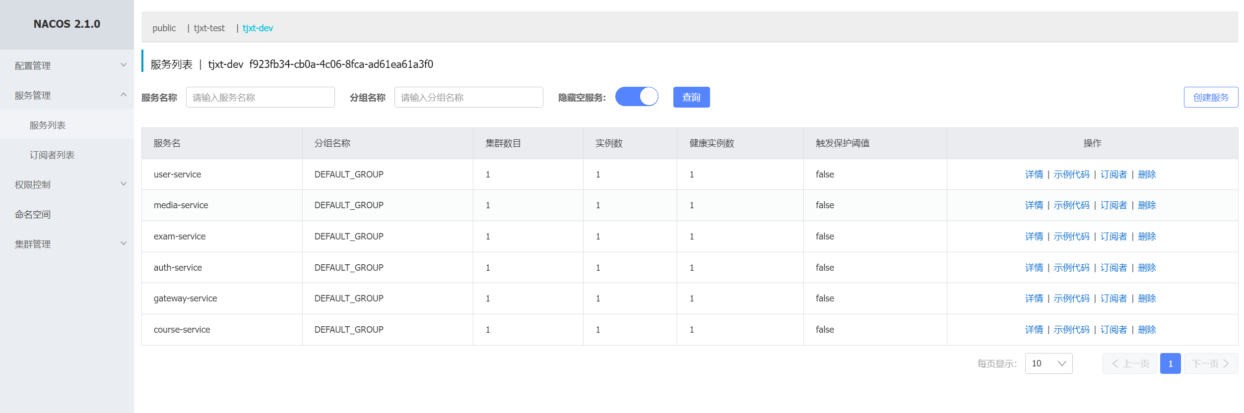 - 此时访问Nacos控制台,可以看到微服务都成功注册了:
