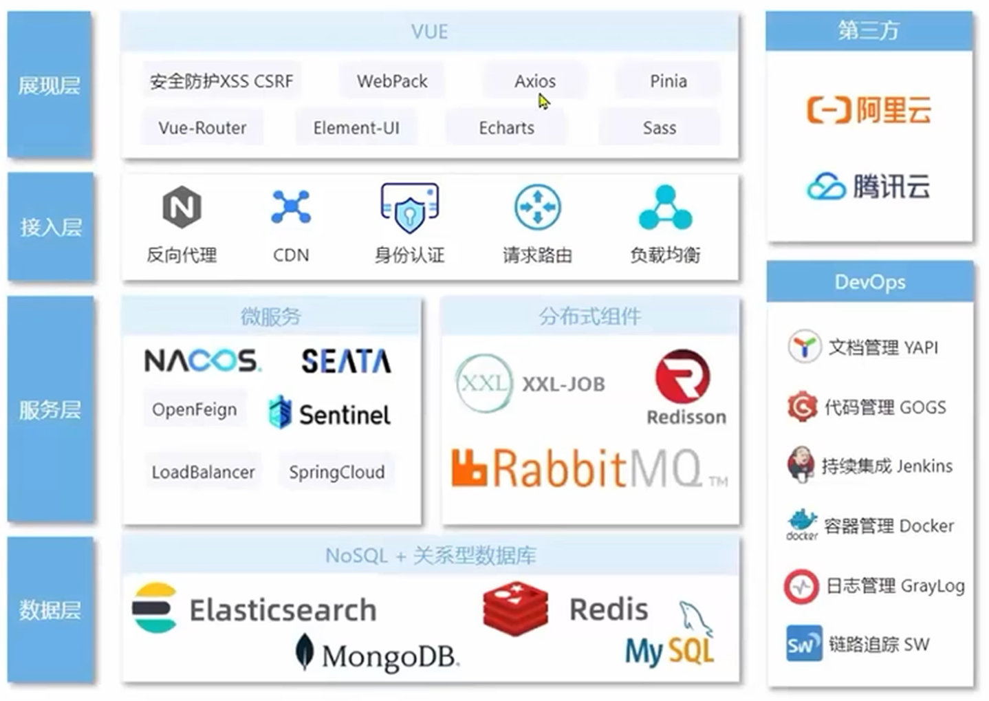 - Git私服(gogs):代码全部提交带了自己的Git私服,模拟企业开发的代码管理,大家也需要自行到私服拉取代码