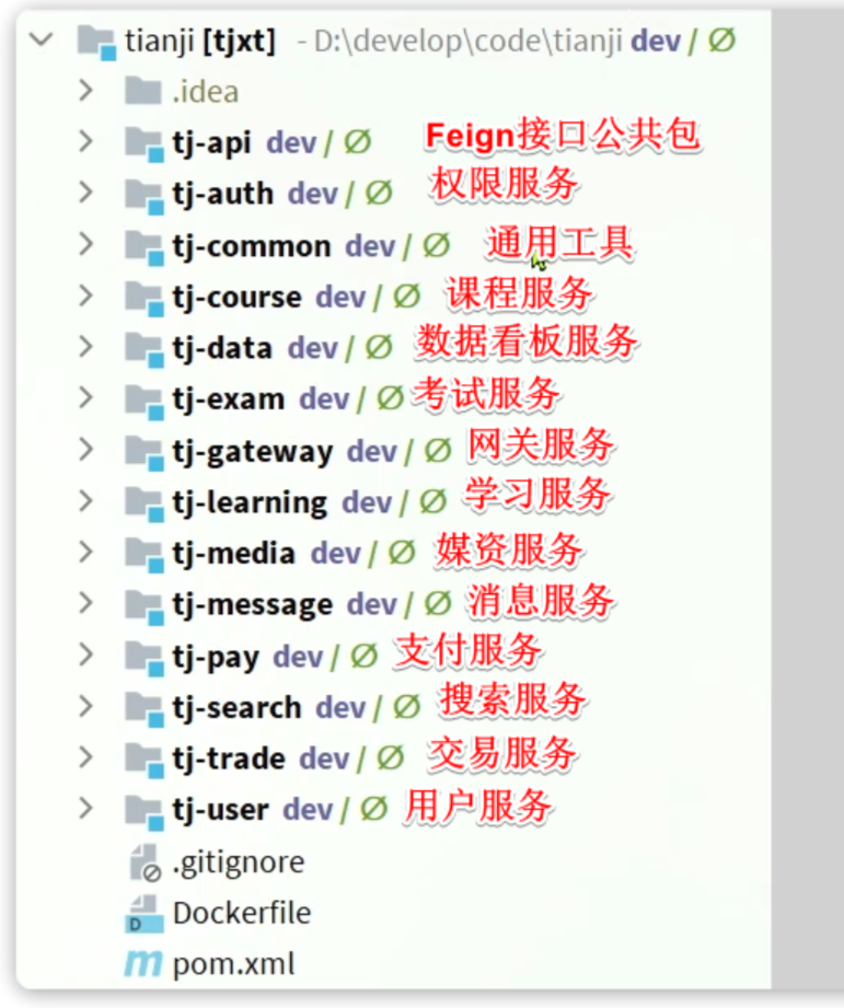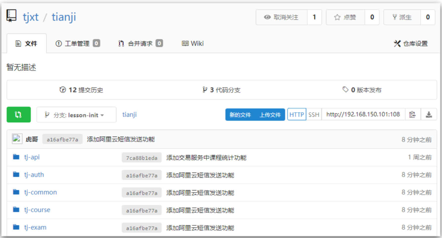 - 查看Git私服的代码:http://git.tianji.com/tjxt/tianji (tjxt/123321)