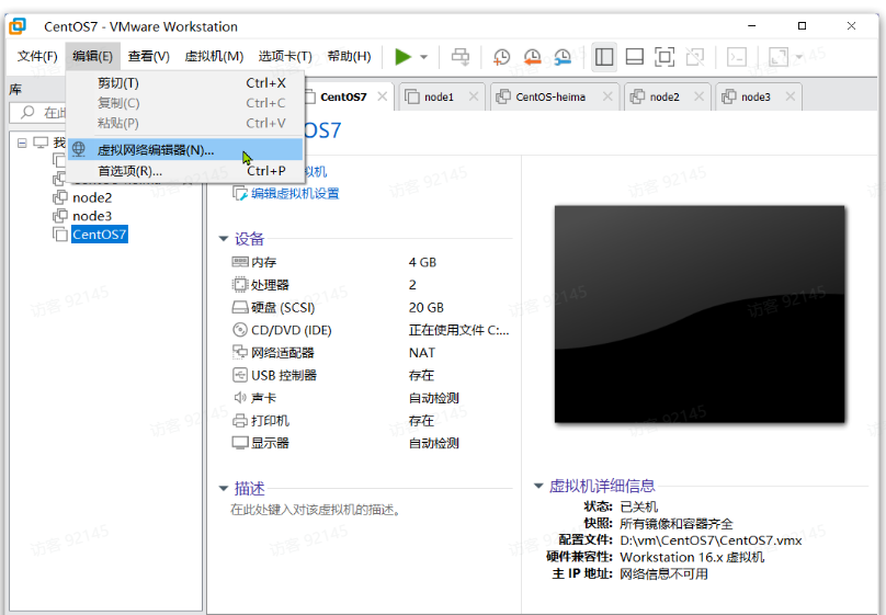 首先,在VMware中选择编辑,虚拟网络编辑器: