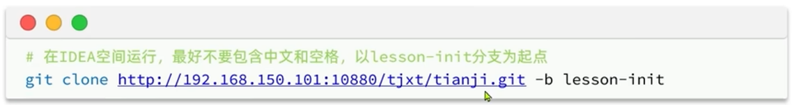 - 将代码克隆到自己的IDEA工作空间中,master分支是完整项目代码,上课要从lesson-init分支开发: