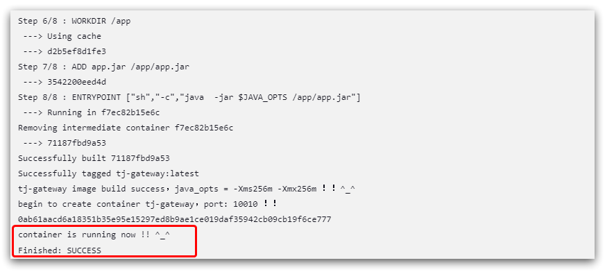 - 看到上面的日志,说明构建已经成功,容器也成功运行了。