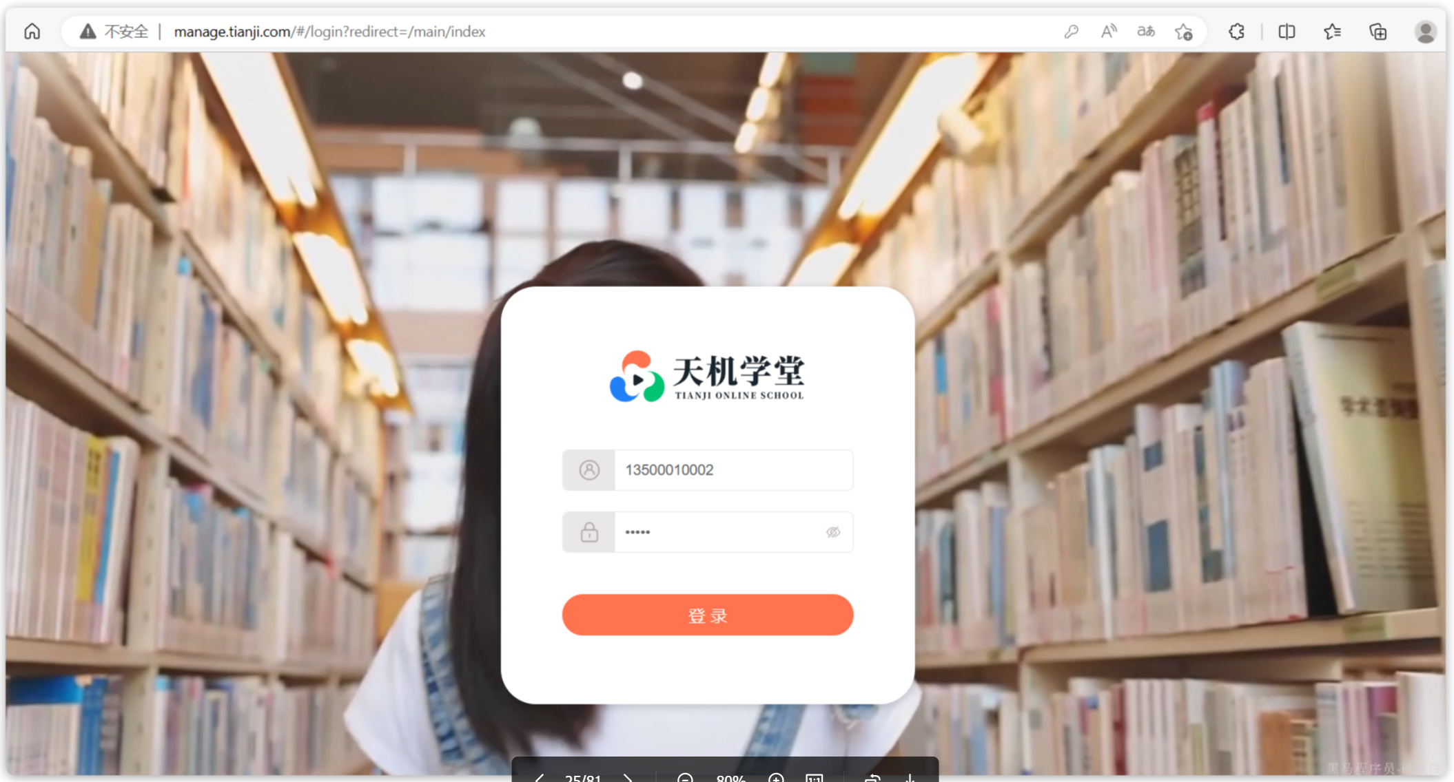 - 此时访问 http://manage.tianji.com 即可看到管理端页面:
