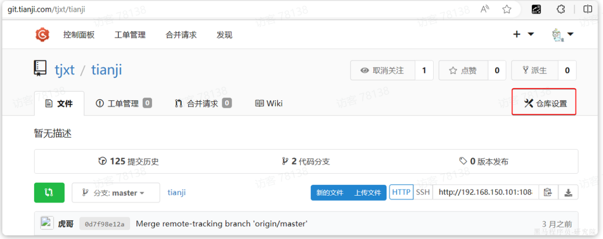 - 首先,访问http://git.tianji.com(tjxt/123321),找到tianji这个仓库,点击仓库设置按钮: