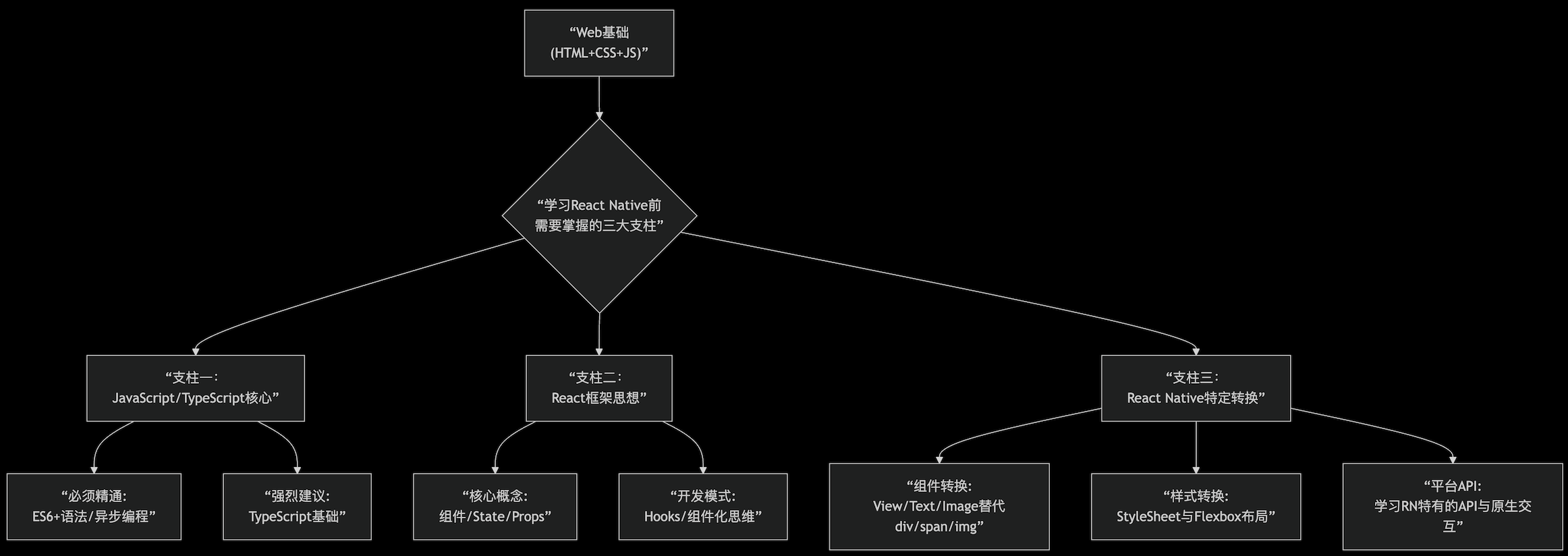 JavaScript与 ES6\] --\> \[React 核心概念\] --\> \[RN 开发环境与第一个应用