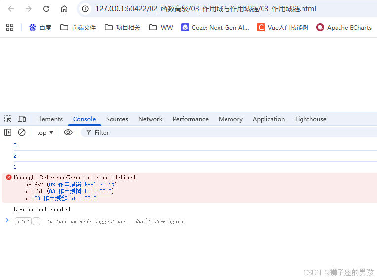 * 再次执行 2 的相同操作,直到全局作用域,如果还找不到就抛出找不到的异常;