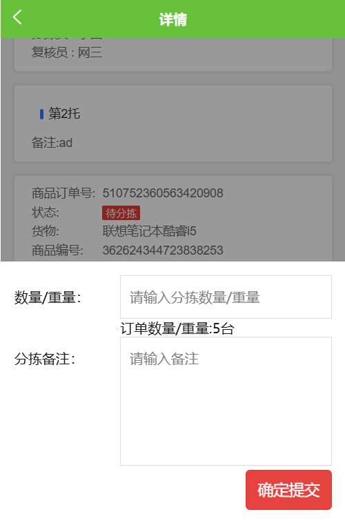 - 拣货操作:更新拣货状态,并填写实际拣货数量,完成拣货后将订单状态更新为"待复核"。