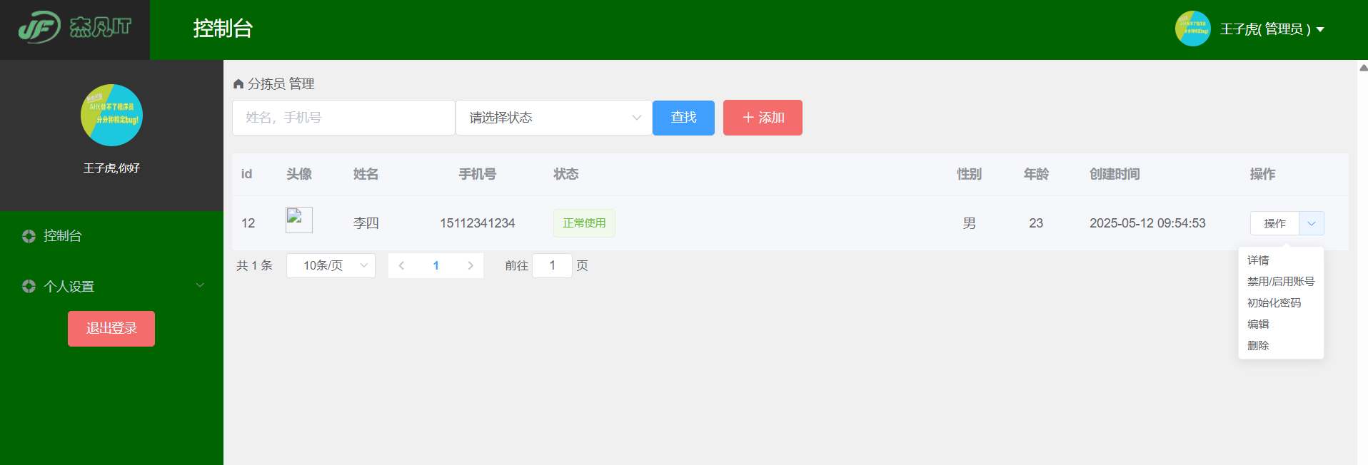 - 用户管理:负责所有系统用户(管理员、分拣员、复核员、司机)的添加、编辑、权限分配、启用/禁用等管理操作。