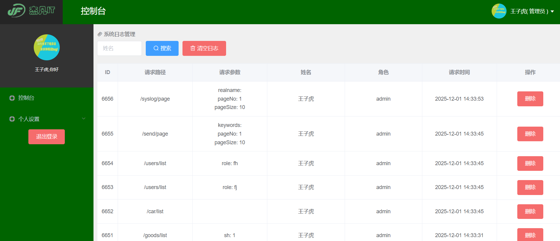 - 系统日志管理:查看和管理系统操作日志,监控系统运行状态。